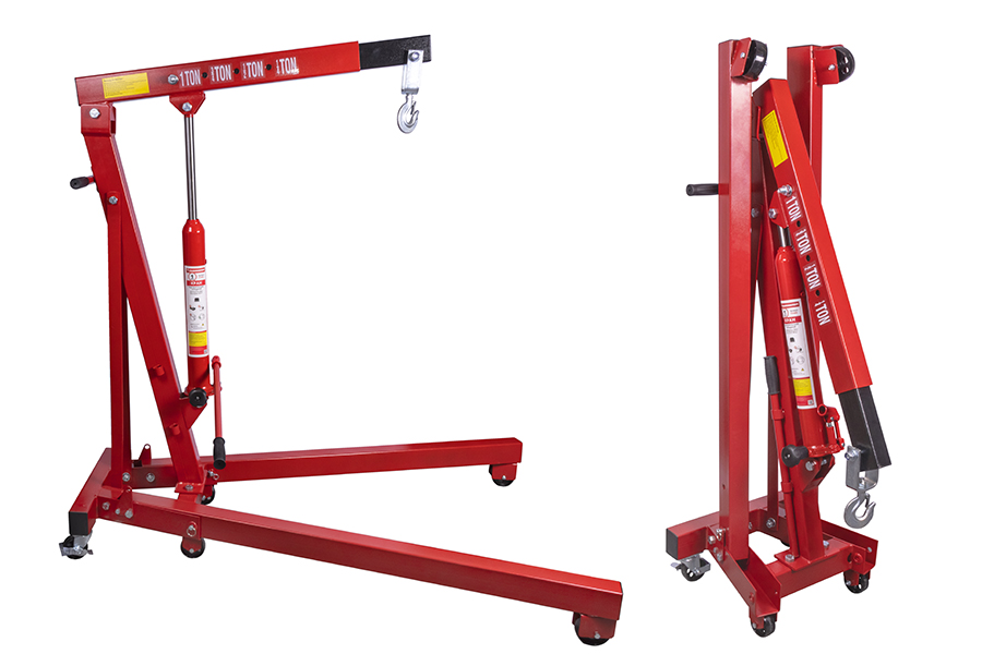 Гидравлический гаражный кран максимальная грузоподъемность 1 т, может широко применяться для работы с различными массивными деталями и конструкциями. Особенно полезным данное устройство будет в автомастерской, где позволит сэкономить значительные силы и время. Незаменимо при снятии двигателя легкового автомобиля.