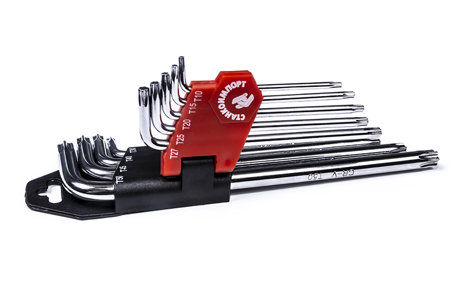 Набор Набор угловых ключей Torx, состоит из 9 L-образных ключей, имеющих профиль TORX.