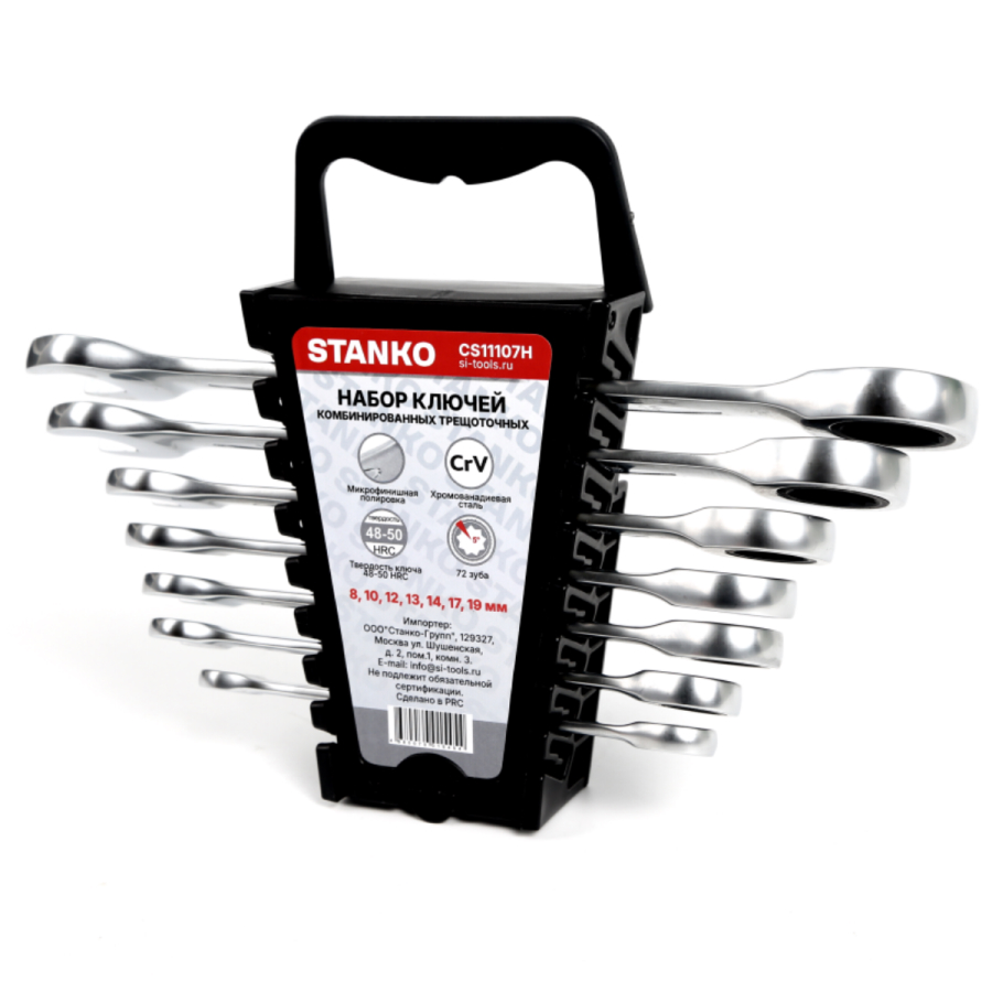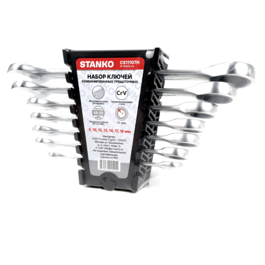 Комбинированные трещоточные ключи: 8 мм, 10 мм, 12 мм, 13 мм, 14 мм, 17 мм, 19 мм.
