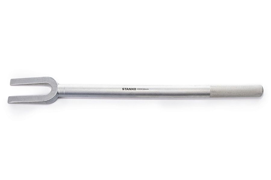 Съёмник изготовлен из высокачественной хромованадиевой стали и закален до оптимальных значений твердости, обеспечивающих высокий ресурс. Рабочая часть съёмника имеет специальную форму, что позволяет максимально эффективно производить работы по разъединению шаровых соединений. На ручке имеется специальная накатка, обеспечивающая надежное удержание инструмента в процессе работы.